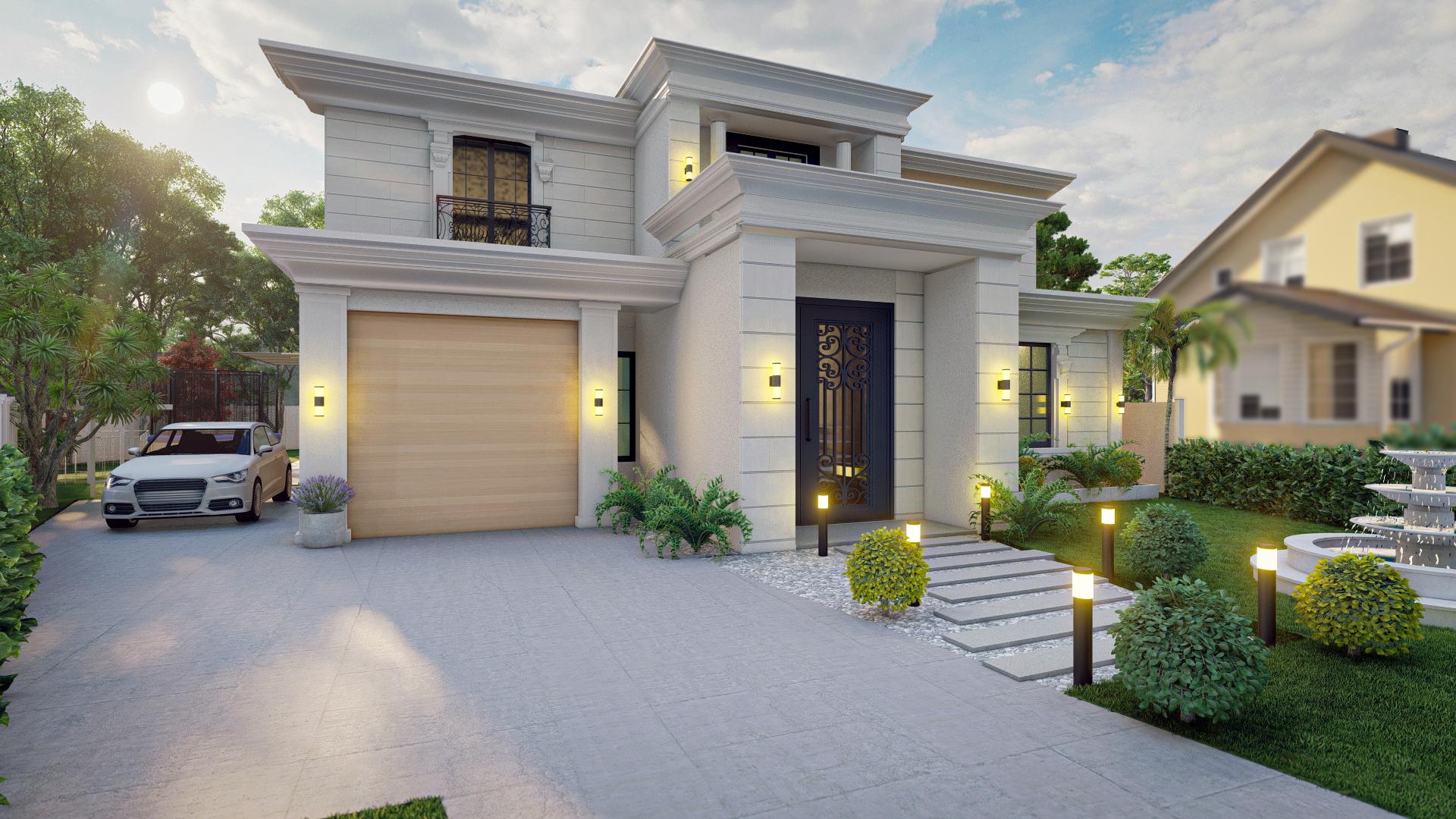Create a well-composed driveway that complements the overall aesthetics.